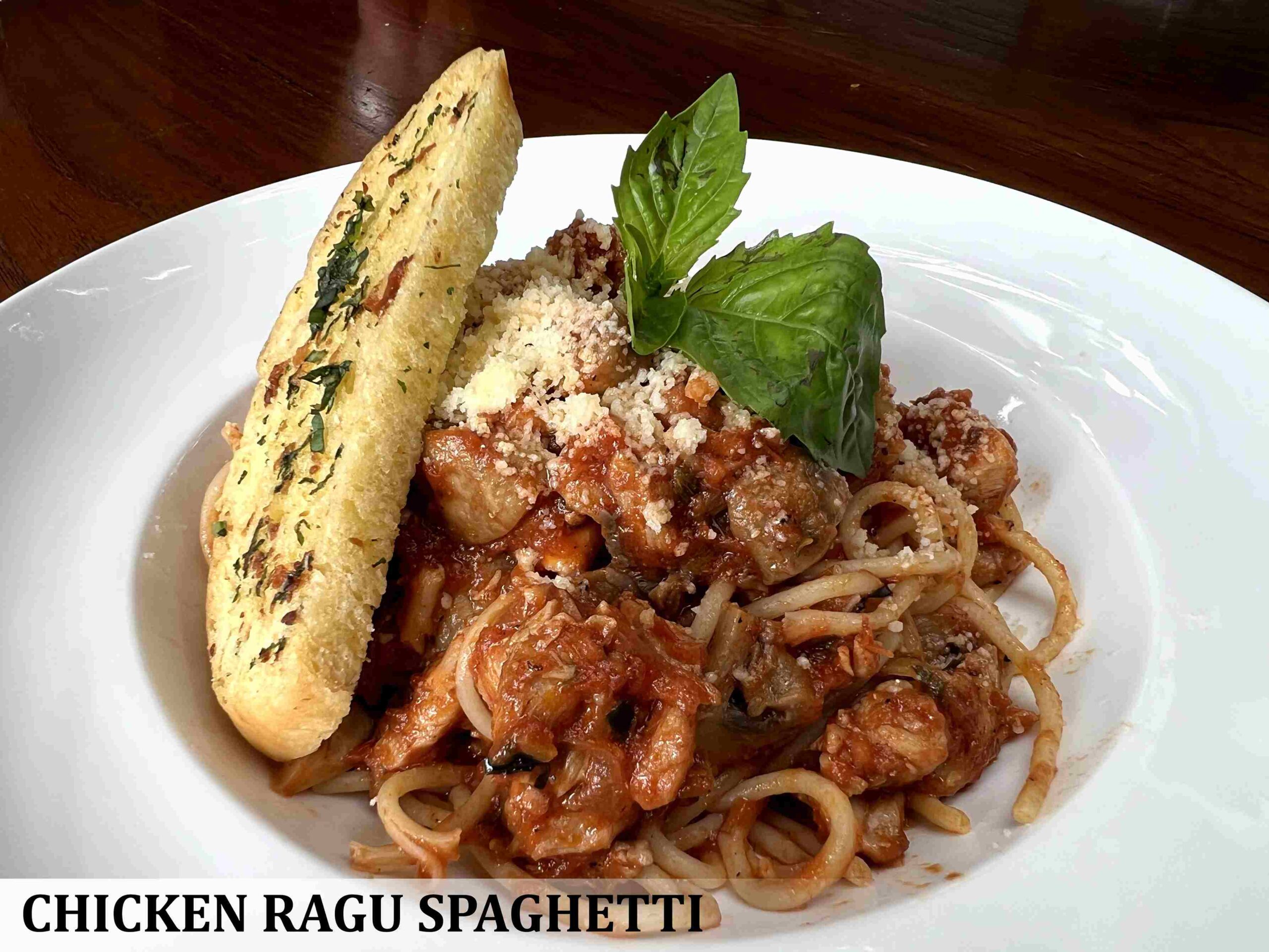 Ragu chicken sauce, vegetable, mushroom , herb, and cheese