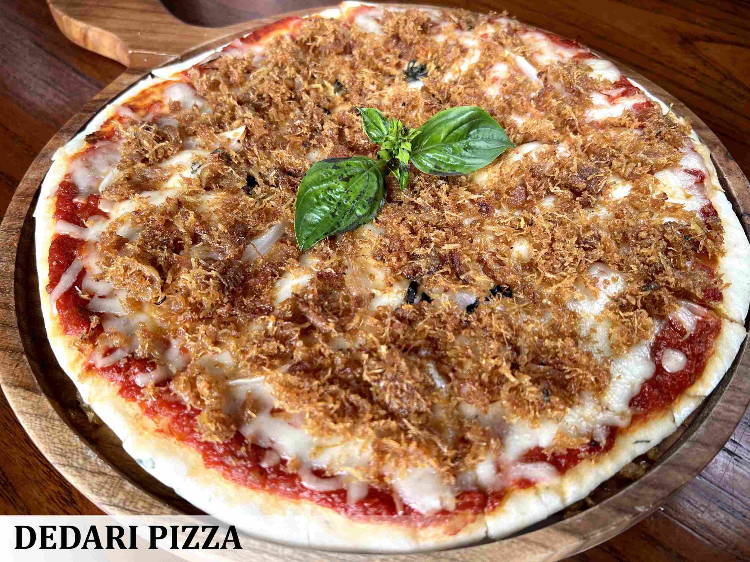 Tomato concasse, onion, dry chili, basil, cheese and abon chicken on top