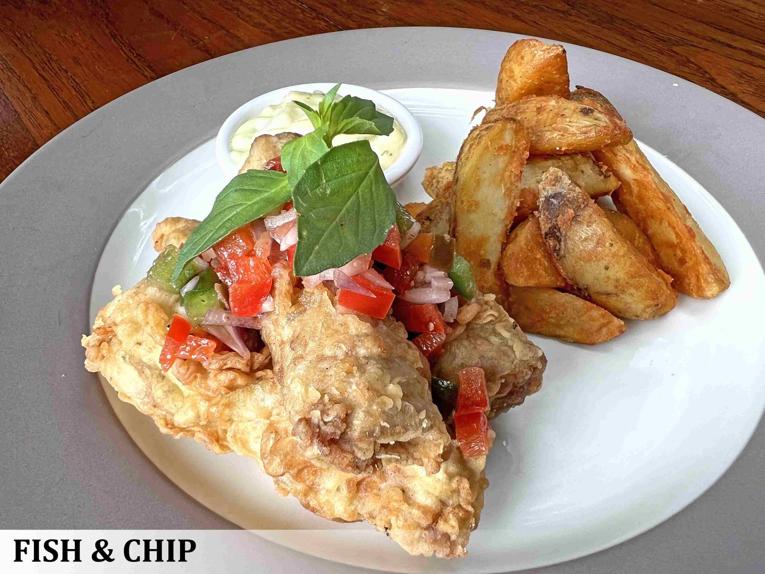 Breaded tuna fish with herb tempura served with dabu-dabu sauce and tartar sauce
