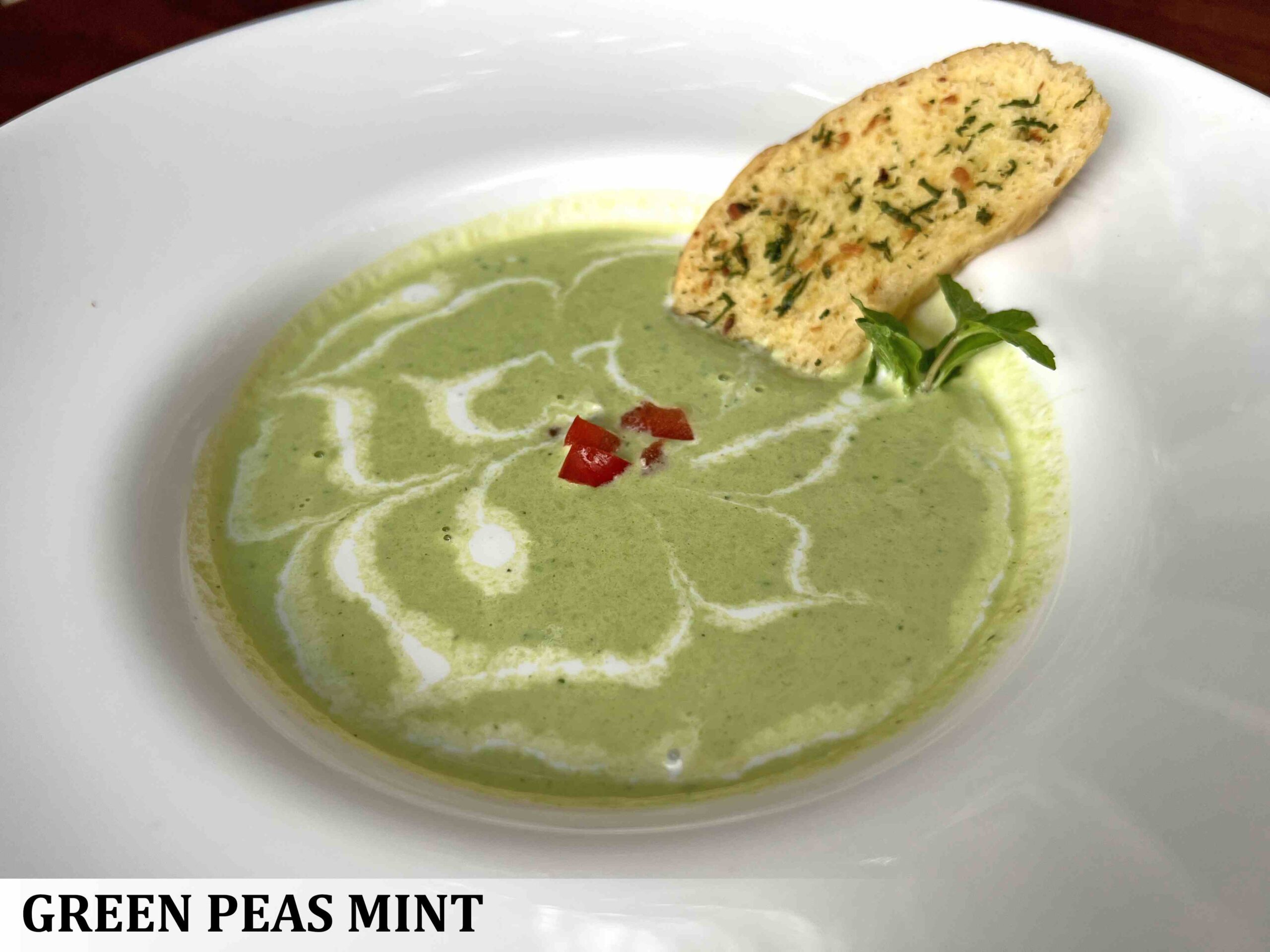 Creamy mushroom with herb pesto, parmesan cheese and crouton