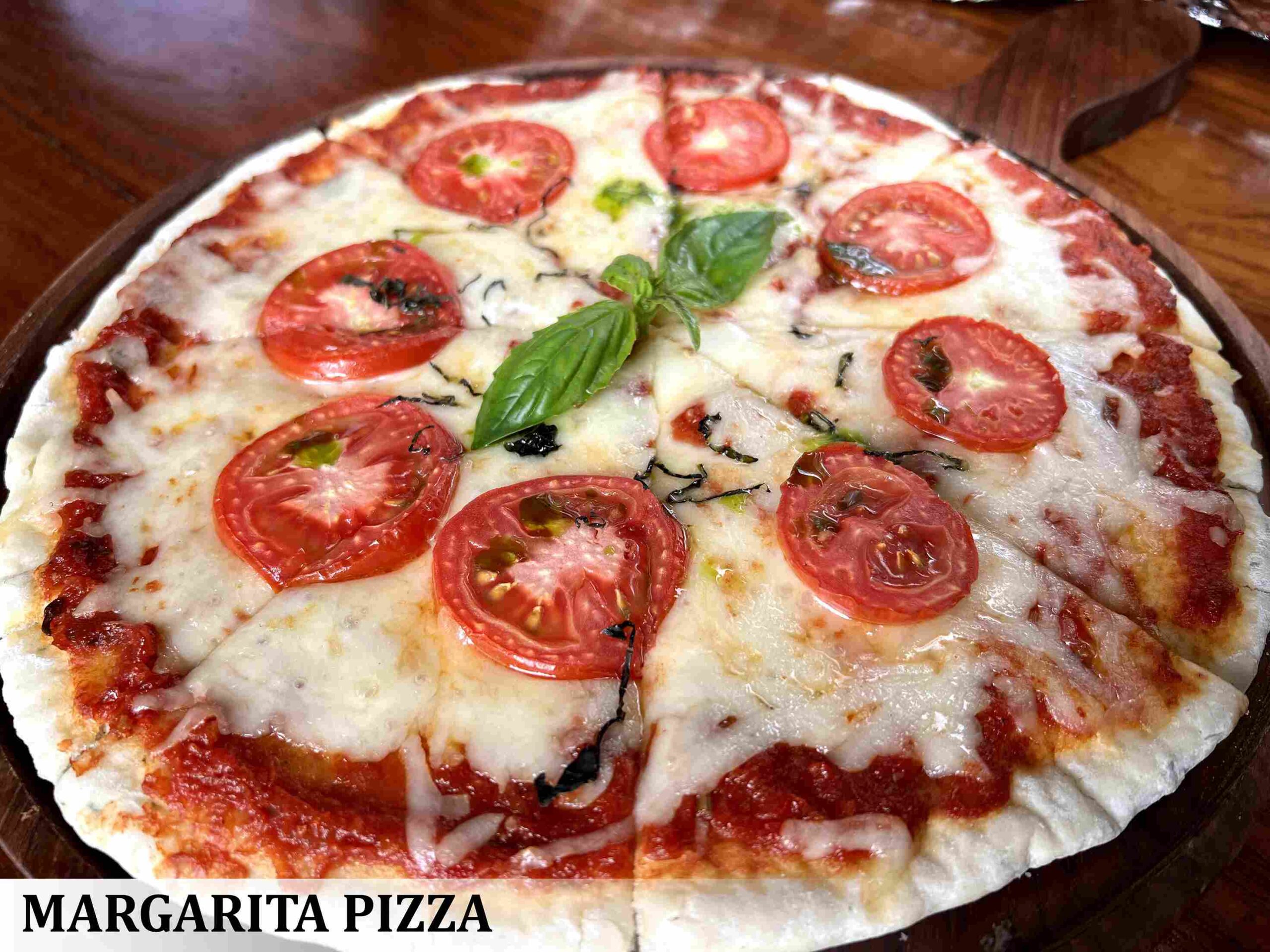 Tomato concasse, mix capsicum, black olive, pineapple, basil, and cheese