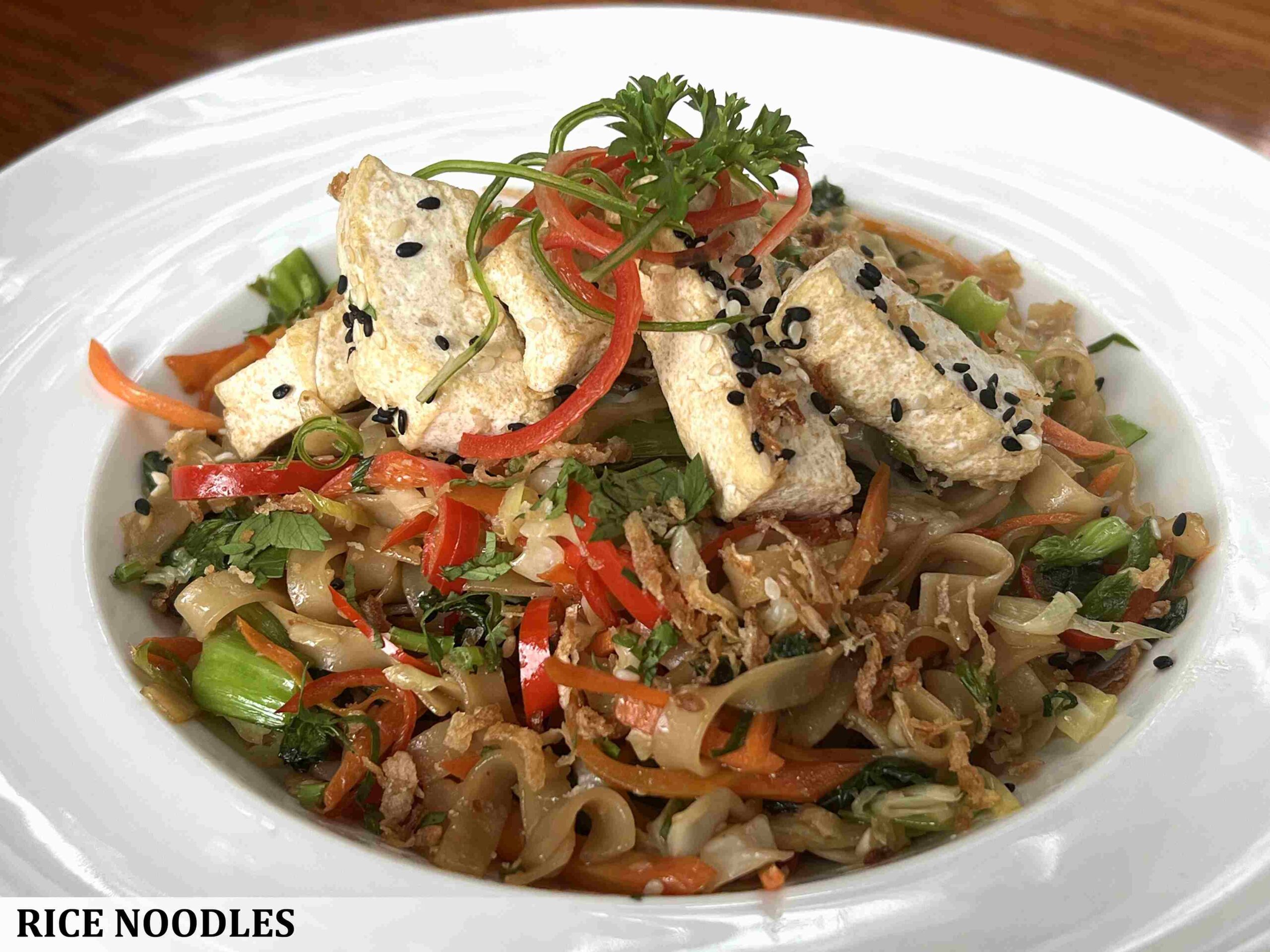 Rice noodle, carrot, cabbage, pokcoy, tofu, sesame