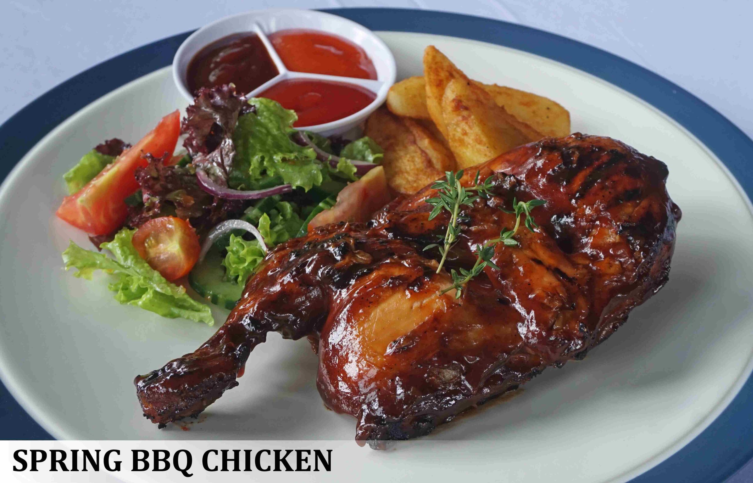 Setengah bagian ayam bakar dengan saus bbq dan selada campur