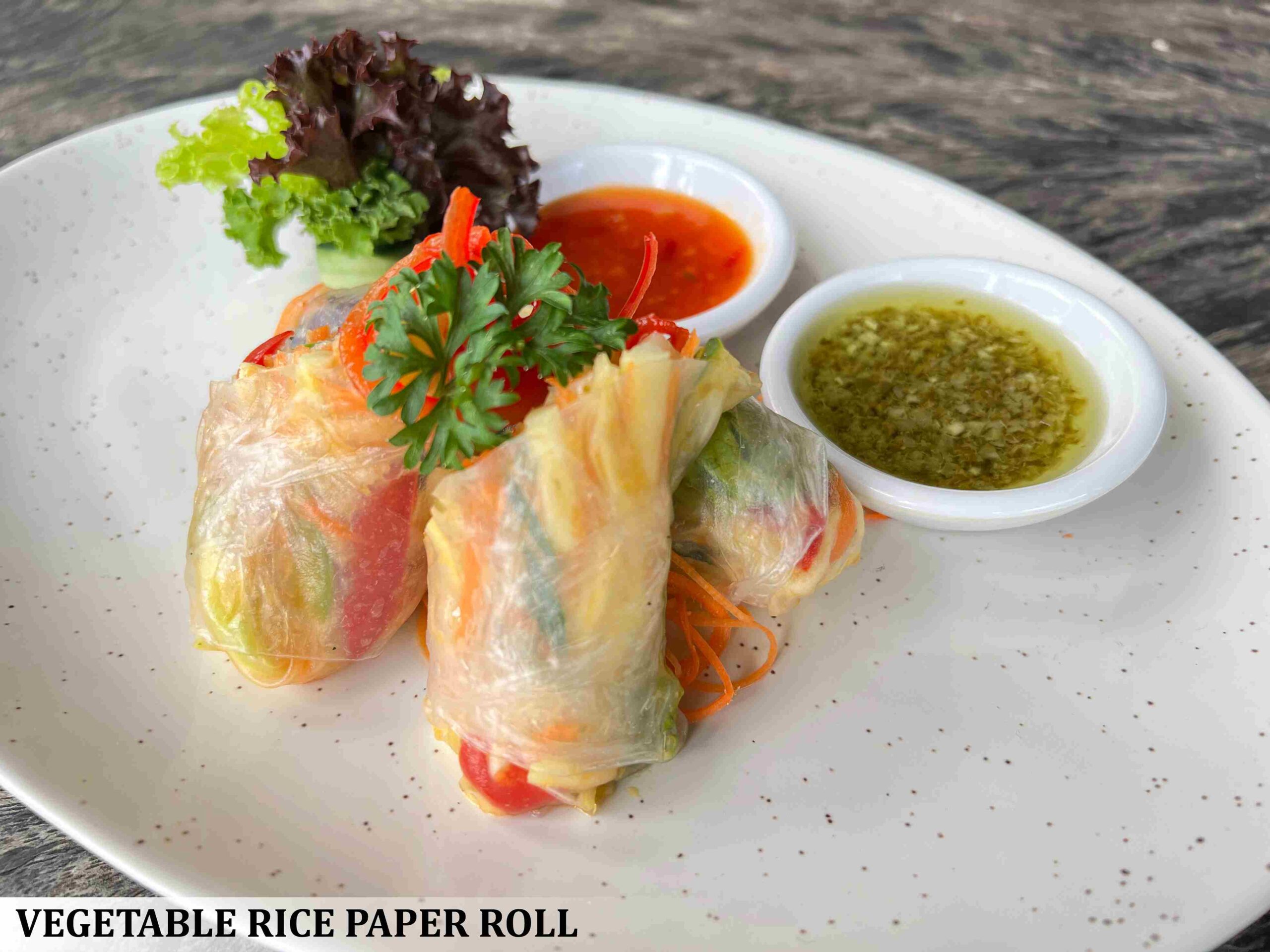 Mix lettuce, tomato, onion, cucumber, cilantro, mint, and Thai dressing